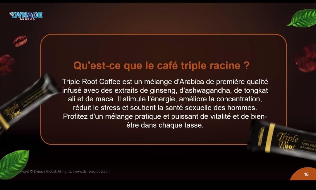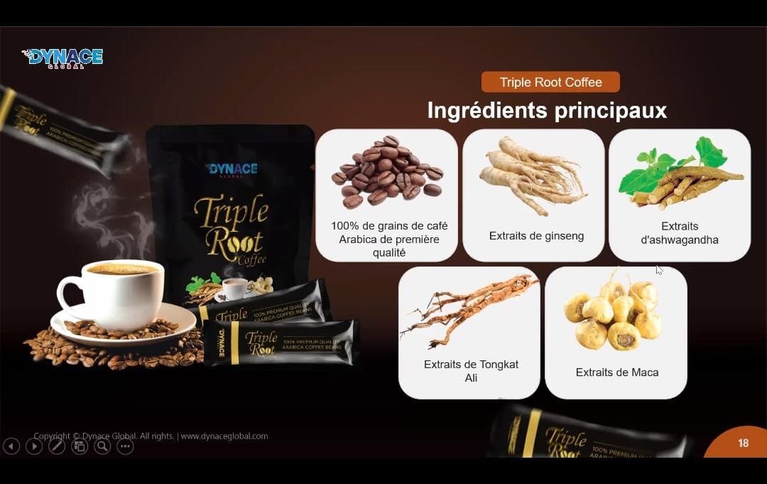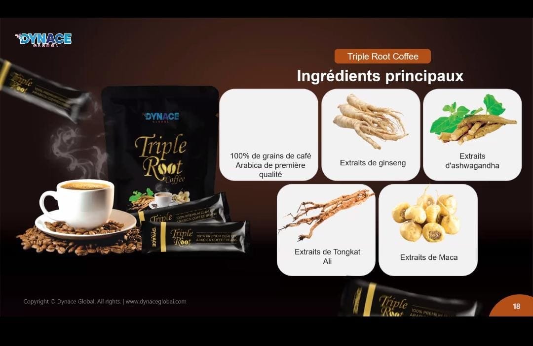 Triple Root est un mélange d’Arabica de première qualité infusé avec des extraits de ginseng, d’Ashwagandha, de Tongkat Ali et de Maca. Il stimule l’énergie, améliore la concentration, réduit le stress et soutient la santé sexuelle des hommes. Profitez d’un mélange pratique et puissant de vitalité et de bien-être dans chaque tasse.